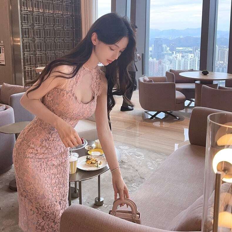 総レースタイトワンピース